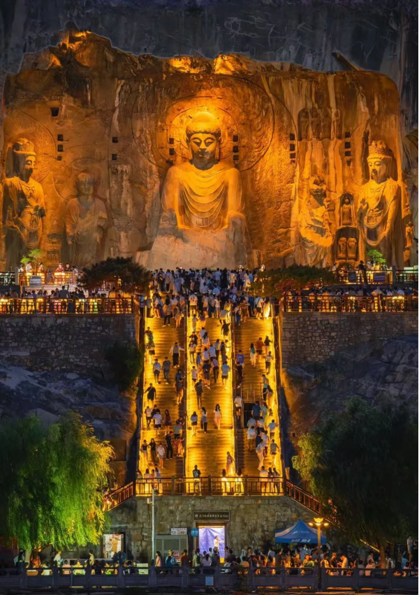 4、龍門石窟:到了龍門石窟,佛龕密布,造像萬千,可親眼一睹到盧舍那大佛的慈悲微笑和萬千佛像的莊嚴(yán)法相,見證佛教文化的輝煌與交融;