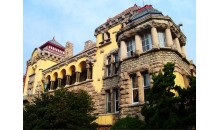 到達(dá)花石樓后自由游覽花石樓及八大關(guān),預(yù)計(jì)游覽1小時(shí)?;ㄊ瘶侵越谢ㄊ瘶?,主要是因?yàn)槠鋬?nèi)部使用“滑石”作為墻壁內(nèi)飾裝飾的,因?yàn)榛捕鹊?,很大一部分墻面保存的不好,被人為刻上了文字。連每個(gè)房間的基本功能都看不出來?;ㄊ瘶堑耐庥^保存十分好,洋樓城堡式的設(shè)計(jì)。還有一點(diǎn)就是它的外部建筑材料是花崗巖。