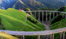 果子溝大橋在設(shè)計(jì)施工中秉承"以最小限度破壞、最大限度的恢復(fù)"的環(huán)保理念,在克服地質(zhì)災(zāi)害頻發(fā)影響通行的同時(shí),邊施工邊進(jìn)行環(huán)?;謴?fù)工作。建成的大橋橋身與果子溝的美景渾然一體,將為果子溝國家級風(fēng)景區(qū)再添一道美麗風(fēng)景線。