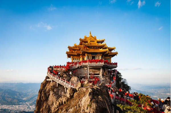 8:50-11:00 乘車前往欒川【老君山景區(qū)】(車程約2小時),相傳是道教始祖李耳(老子)的歸隱修煉之地,北魏時在山中建廟紀念,后來被封為“天下名山”,歷來香火旺盛。山中樹木茂盛,風景如畫,處處都能看到山泉。金秋時分,這里更是周邊地區(qū)賞紅葉的不二之選。雨后的老君山,云霧環(huán)繞在各個山峰中,猶如天上仙境。景區(qū)面積龐大,主要分為居中的老君山主景區(qū)、西部的追夢谷景區(qū)和東部的寨溝景區(qū)。一般游客會用一天的時間游玩老君山主景區(qū),這也是整個景區(qū)開發(fā)完善的區(qū)域。游覽【十里畫屏】這里既有山峰的剛,也有云霧的柔,讓人驚心動魄,久久不能忘懷,是老君山的知名景觀之一。老君山內(nèi)綿延十里的穿云棧道都是如畫的美景,從而被稱為十里畫屏。放眼望去整個山上披綠掛紅,雄偉壯觀,游走中間,一步一景,景景如畫,讓人如癡如醉?!?strong>老子文化苑】采用漢代建筑風格,主體思想是“大道行天下,和諧興中華”。由漢闕、老君山照壁、金水橋、眾妙門、三重太極合和廣場、老子圣像等組成,能夠感受到濃厚的道家文化氣息?!?strong>金頂?shù)烙^群】處在高聳的群峰之巔。道觀群在陽光的照射下,折射出耀眼的金光,如夢如幻,恍若仙境。金頂?shù)烙^群包括兩座金頂、一座金殿以及道德府、鐘鼓樓等建筑;