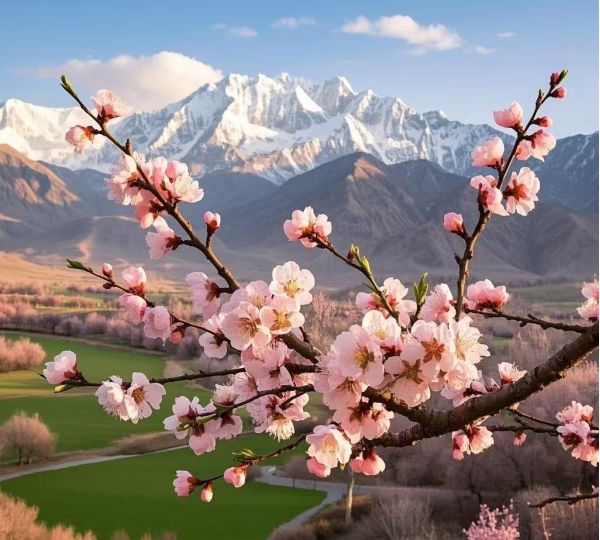 09:00-12:30  從塔縣出發(fā),一路經(jīng)塔莎古道,這是一條蜿蜒于喀拉昆侖山脈興都庫什山脈之間的隱秘古道前往杏花村,滿院的老杏樹迎著春風(fēng)盛開了,經(jīng)過一夜的小風(fēng)吹過,花瓣曼舞在陽光下太浪漫了,整個村子都是嬌艷欲滴的粉嫩色,讓你真正體驗“牧童遙指杏花村”的畫面,在這暢游大半天,享受不一樣的南疆之春;這里的杏花,與別處截然不同。它們并非精心栽培的園林景致,而是擁有千年生存智慧的野生古樹。在海拔三千米以上的嚴酷環(huán)境中,它們依偎著流淌的冰川融水,根系緊緊抓住貧瘠的砂石,綻開出震撼人心的生命力;