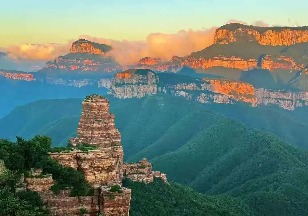 早指定時(shí)間地點(diǎn)集合出發(fā)赴“世界三大砂巖地貌之一”的【嶂石巖景區(qū)】它雄渾壯闊、丹立翠橫、三層疊起的赤壁紅霞,有“百里赤壁,萬丈紅綾”之稱。