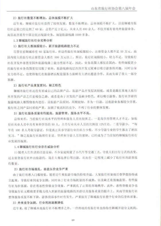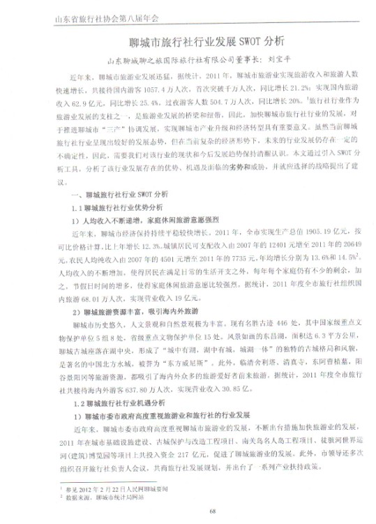 【網(wǎng)宣部】山東省旅行社協(xié)會2012年12月特刊發(fā)表全國優(yōu)秀導(dǎo)游員/聊之旅國際旅行社董事長劉寶平文章《聊城市旅行社行業(yè)發(fā)展SWOT分析》,文章指出雖然當(dāng)前聊城旅行社行業(yè)呈現(xiàn)出較好的發(fā)展態(tài)勢,但在當(dāng)前復(fù)雜的經(jīng)濟形勢下,未來的行業(yè)發(fā)展仍存在一定的不確定性,因此,需要我們對該行業(yè)的現(xiàn)狀和今后發(fā)展趨勢保持清醒認(rèn)識,文章通過引入SWOT分析工具,分析了該行業(yè)發(fā)展存在的優(yōu)勢、機遇及面臨的劣勢和威脅,并就應(yīng)選擇的戰(zhàn)略提出了建議。
