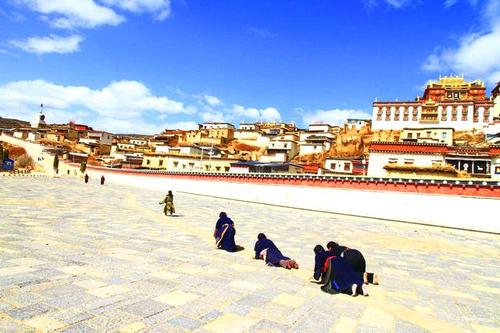 前往【大昭寺廣場】,每年都有眾多信徒從數(shù)千里之外幾步一叩首的到這里來朝拜、祈求降福,如自行付費購買門票進大昭寺,可預(yù)約導(dǎo)游免費講解;