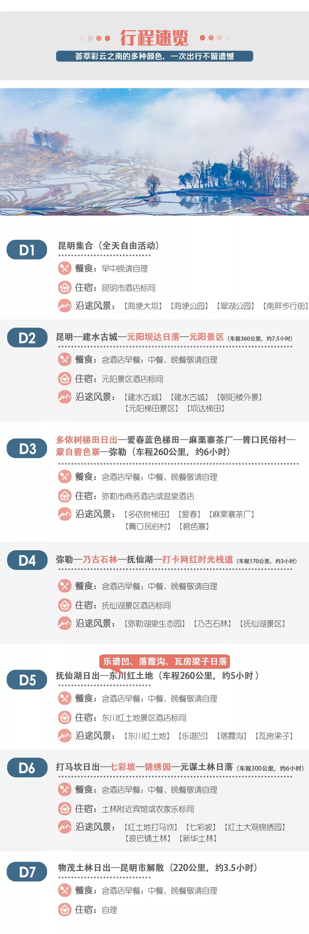 當日行程:早晨出發(fā)前往【紅土地打馬坎】觀賞磅礴日出,之后到達【七彩坡】、【紅土大觀錦繡園】進行拍攝;
