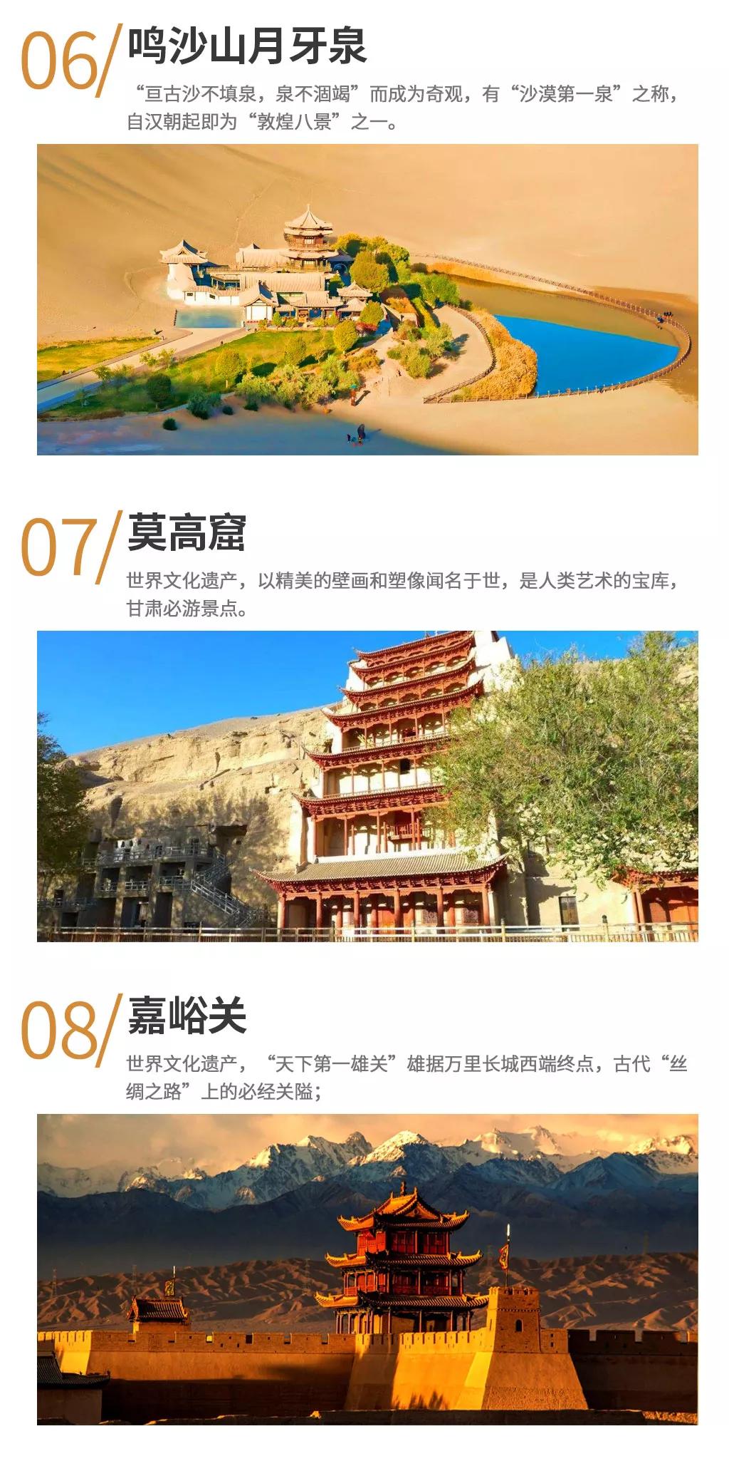 門票:莫高窟門票、張掖丹霞門票(含觀光車)、嘉峪關(guān)門票、鳴沙山門票、石油小鎮(zhèn)門票、茶卡鹽湖門票、青海湖二郎劍景區(qū)門票。(莫高窟普通門票構(gòu)成:門票180元/人+交通費(fèi)10元人+莫高窟數(shù)字展示中心48元/人;莫高窟應(yīng)急票構(gòu)成:門票90元/人+交通費(fèi)10元/人)