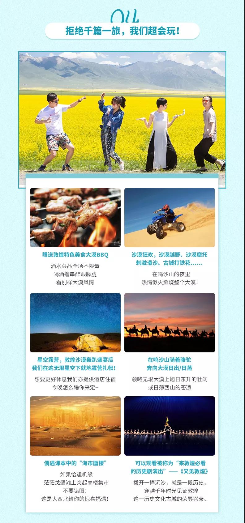 7、贈送:贈送特色敦煌沙漠BBQ;贈送貼心禮包旅游三寶、魔術(shù)頭巾;贈送蘭州市區(qū)接機/接火車服務(wù),23點后由于運管規(guī)定不能接機/接站,敬請諒解。(贈送項目不用費用不退)