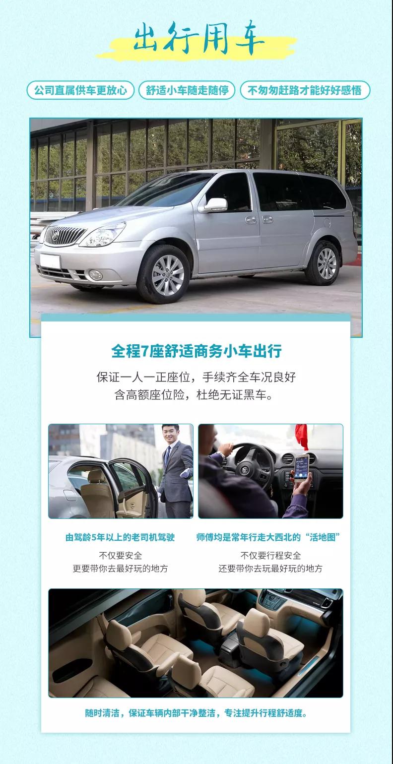 2、交通:私享VIP4-6人小團,全程舒適7座商務(wù)車出行,保證一人一正座位,車型大小根據(jù)實際人數(shù)安排,且由駕駛經(jīng)驗豐富的司機為您的出行保駕護航,報價包含車費、油費、停車費、維修費及司機勞務(wù)費。