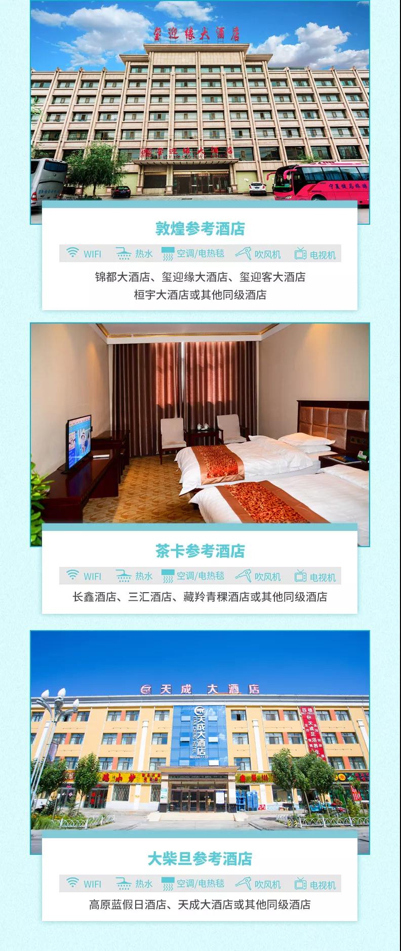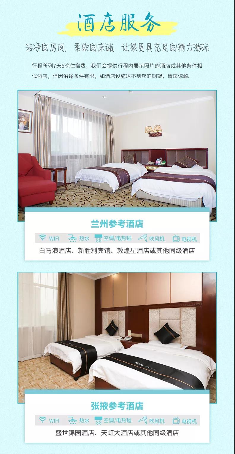 蘭州:白馬浪酒店、新勝利賓館、敦煌星酒店或其他同級酒店