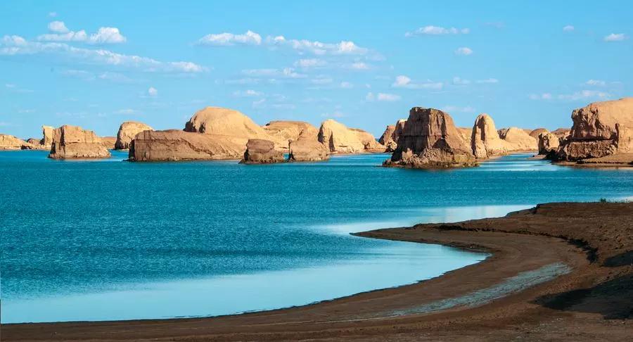 然后我們抵達(dá)深居柴達(dá)木盆地腹地的【水上雅丹】。這是世界上唯一一處水上雅丹地貌,因其位置較偏僻,即使是當(dāng)?shù)厝艘部赡懿恢趺催^去,所以至今仍是一片未開發(fā)的處女地,鮮少有人涉足。這立于汪洋之上的雅丹地貌群經(jīng)過上千年的風(fēng)雨殘蝕,如同遨游大海顯露脊背的群鯨,湖岸邊高大的鯨背是天然的觀景臺,極目遠(yuǎn)望,西邊是高低錯落的水上雅丹地貌群,有的如策馬揚鞭,有的如奔馳的駱駝,有的像婀娜多姿的女子,魔幻而神秘。以清澈透明的藍(lán)天為幕,參差錯落的雅丹地貌與碧波交相輝映,天上鴨鳴雁啼,水中波光粼粼,這一望無際的荒漠中憑空而出了一片”汪洋“,只有親身看過這一片汪洋上的鬼斧神工之作,才會明白為它為什么會被人稱為“魔鬼城”。