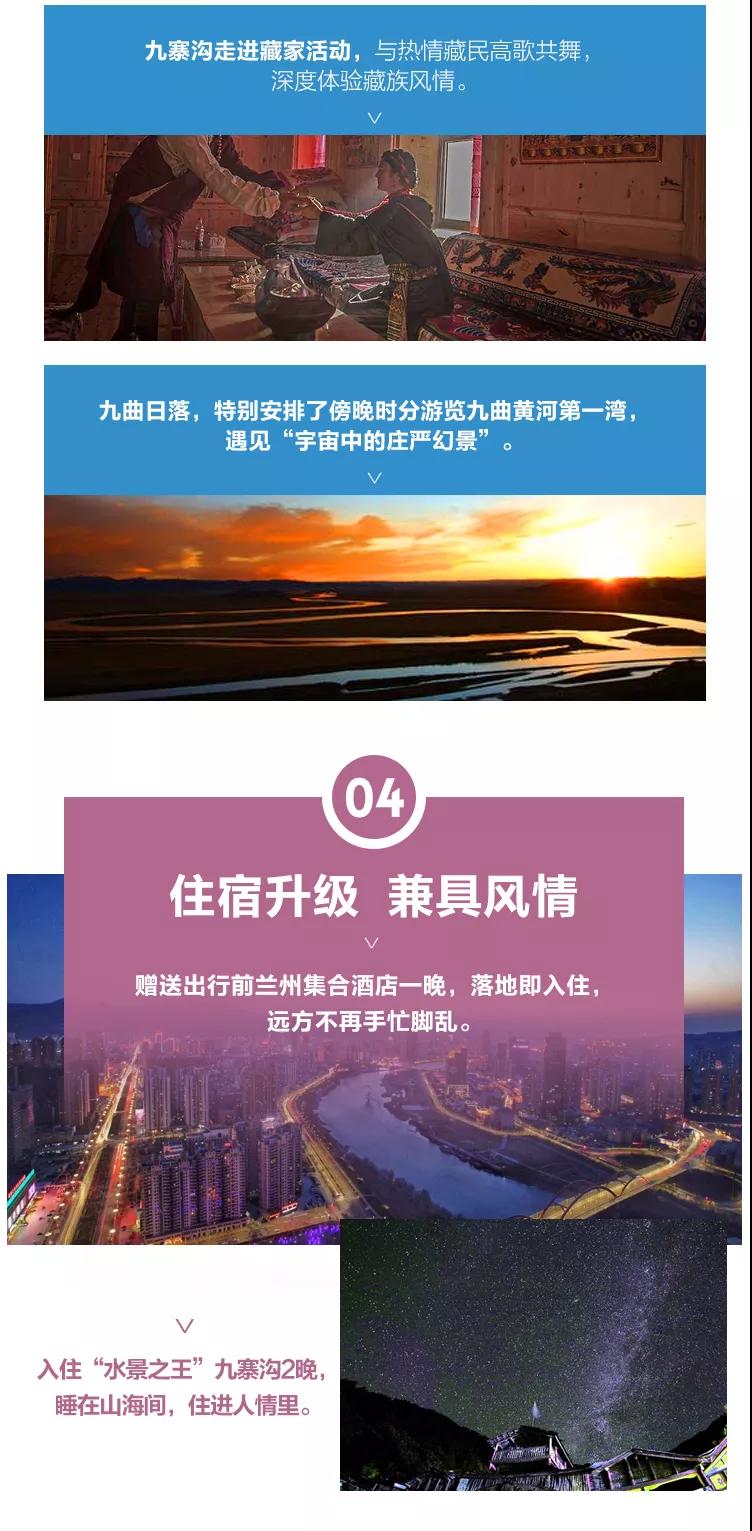 4、九寨溝景區(qū)實(shí)行分區(qū)域開放,開放區(qū)域?yàn)闇峡诮?jīng)諾日朗瀑布至長(zhǎng)海,扎如溝的扎如寺及日則溝的鏡海;其中,長(zhǎng)海、五彩池、鏡海、諾日朗瀑布、樹正群海、雙龍海瀑布、扎如寺等景觀原則上為步行游覽區(qū),具體游覽方式請(qǐng)聽從隨車講解員安排;