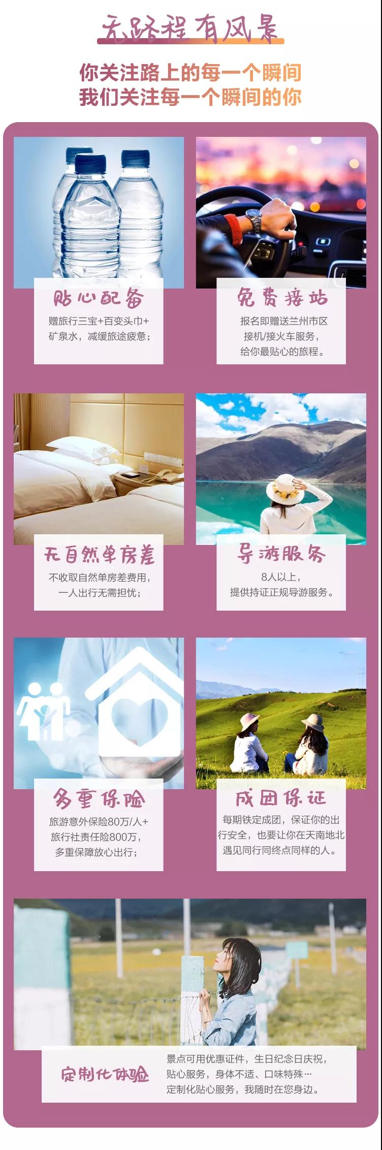 3、沿途景區(qū)景點(diǎn)、餐廳、廁所、加水點(diǎn)、高原緩沖區(qū)內(nèi)設(shè)有小賣部、超市、旅游紀(jì)念品、手工藝土特產(chǎn)等販賣攤點(diǎn),非我方安排,請(qǐng)游客根據(jù)自身需求及興趣選擇消費(fèi),并保留好購物小票以便后續(xù)維權(quán);購物時(shí)請(qǐng)保管好隨身攜帶的物品,不到人多、擁擠的地方購物,不當(dāng)眾清點(diǎn)錢包里的鈔票,也不隨商品推銷人員到偏僻地方購物或取物。