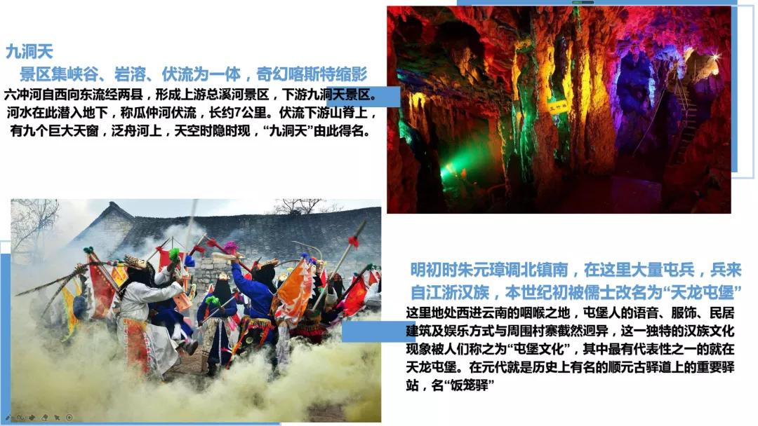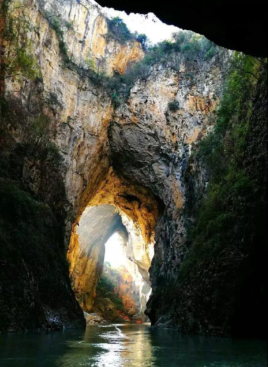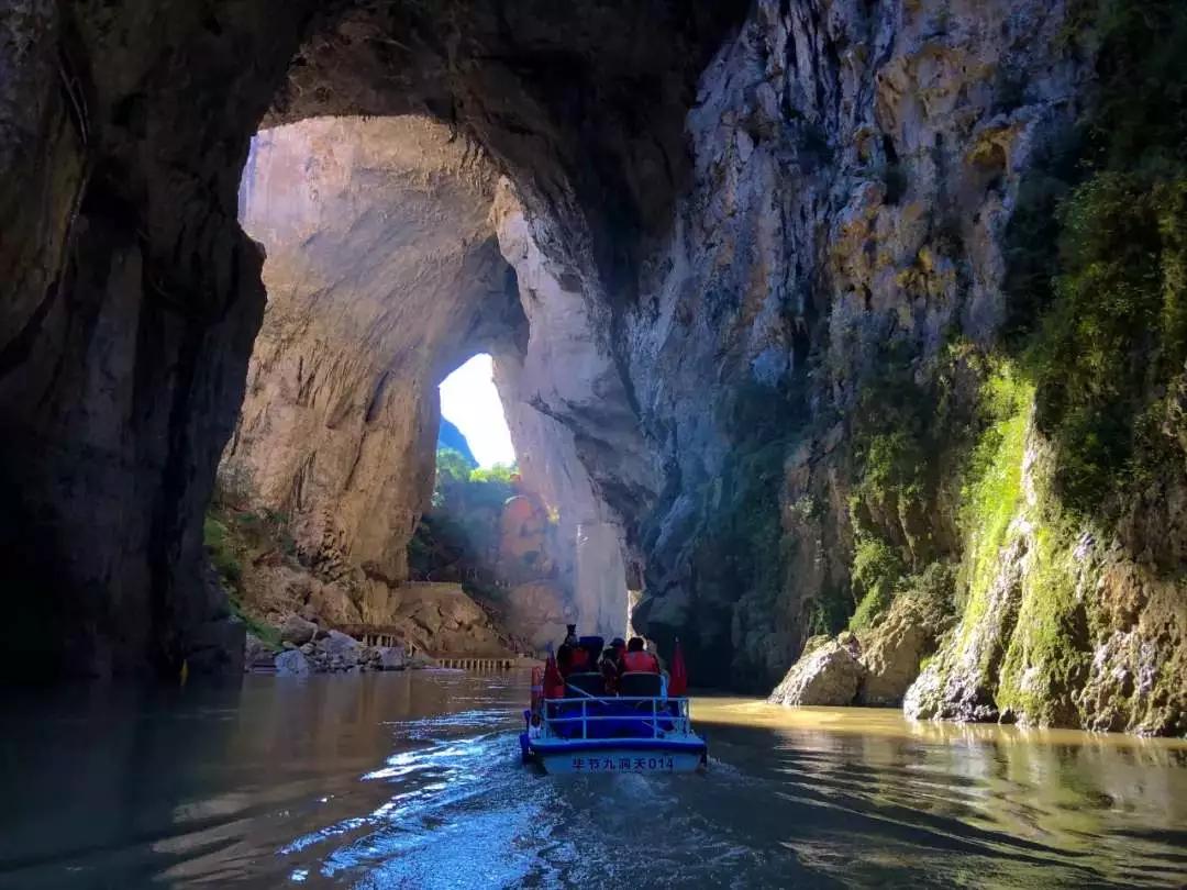 早餐后前往1989年與黃果樹瀑布一道被評為貴州省十大風(fēng)景名勝區(qū)之一的九洞天。九洞天是國務(wù)院授予國家級重點風(fēng)景名勝區(qū)之一,是烏江干流六仲河上游流經(jīng)兩縣之間的一段以伏流(當(dāng)?shù)厝私嘘幒樱榇淼目λ固鼐C合地貌。該段伏流時隱時現(xiàn),神奇莫測,形成地下河,當(dāng)?shù)厝朔Q瓜仲河,長約7公里,在下游長約6公里的河段上,箱形切割頂板多處塌陷,形成了大小不同,形狀各異的天窗洞口,使伏流明暗交替,洞洞相連,組合成集伏流、峽谷、洞穴、天橋、天坑、及生物化石為一體的雄奇瑰麗的巖溶大觀。