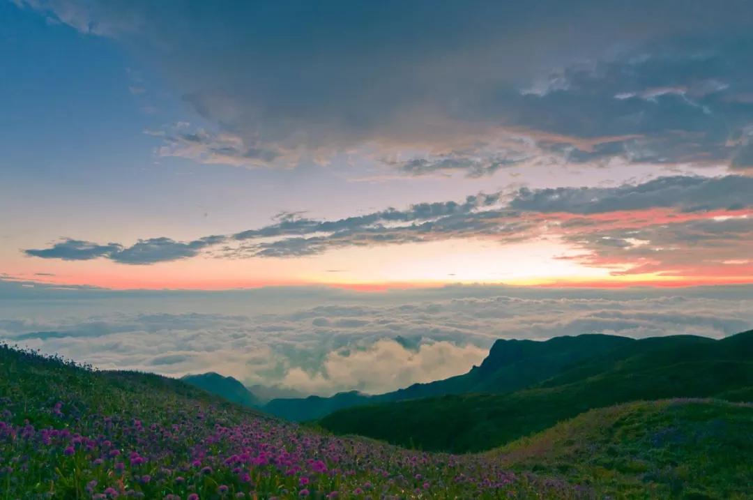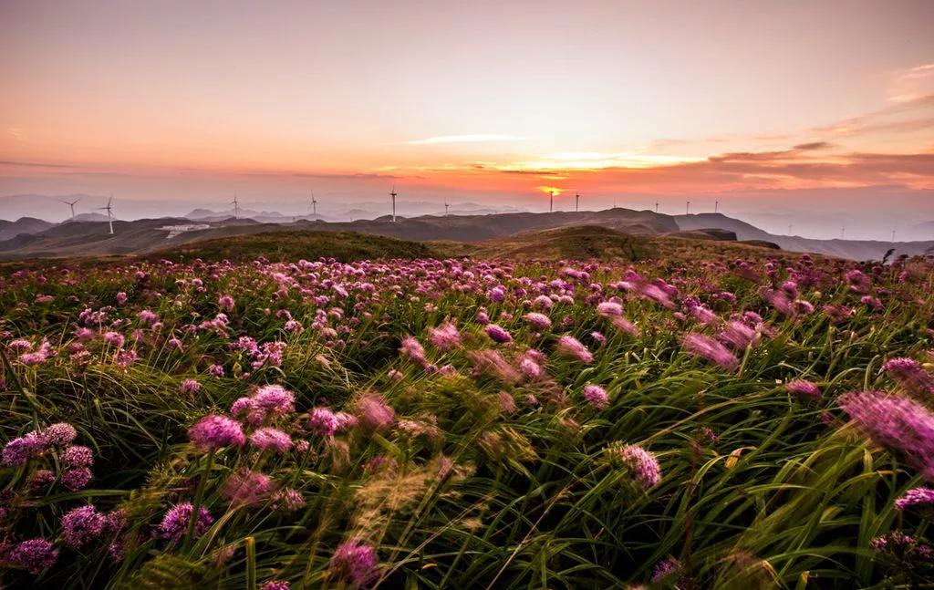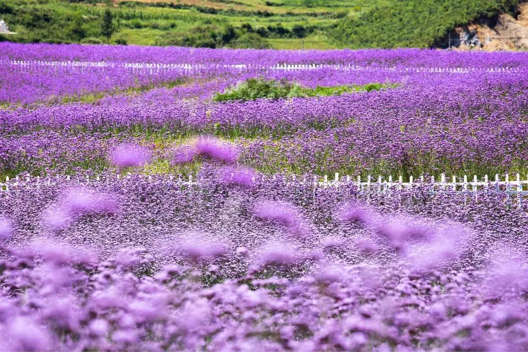 今天我們驅(qū)車來到云上花海的韭菜坪山腳下,為了能欣賞到韭菜坪最美的日出景象,我們把重頭戲放到了第二天一早,而今天大家在山下游玩拍照,這里盛開著一望無際紫色的馬鞭草 ,也可以上山去拍一個日落霞光哦。