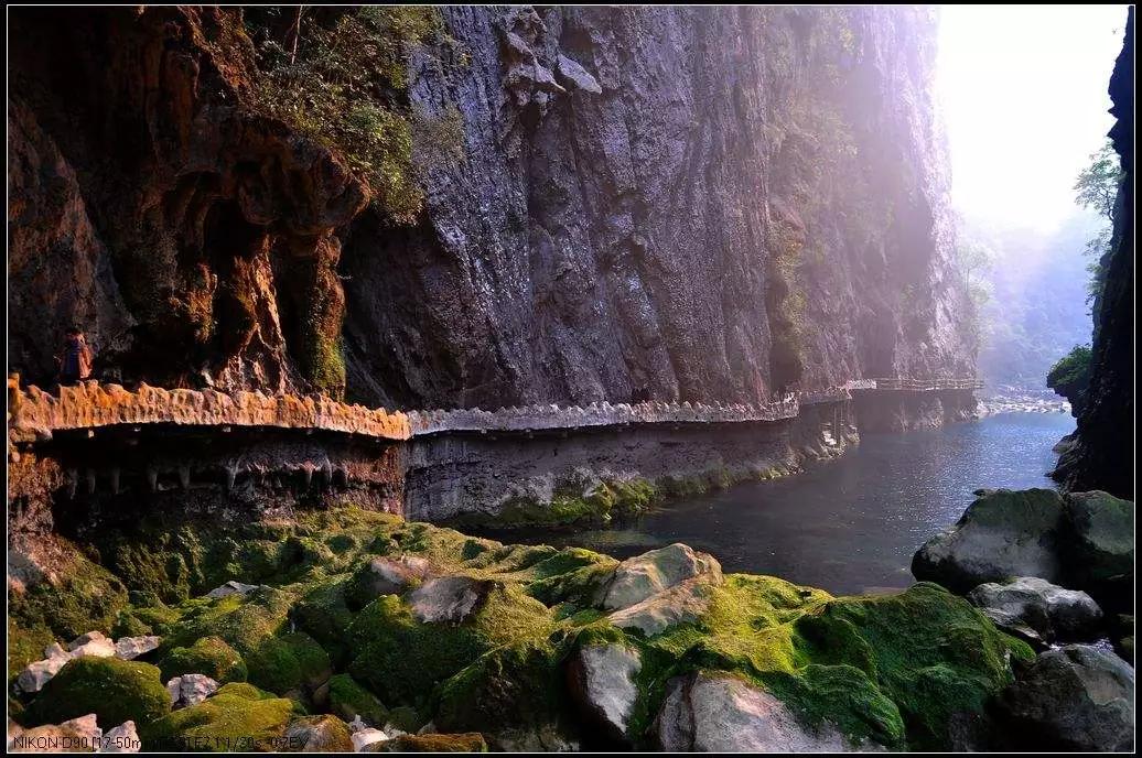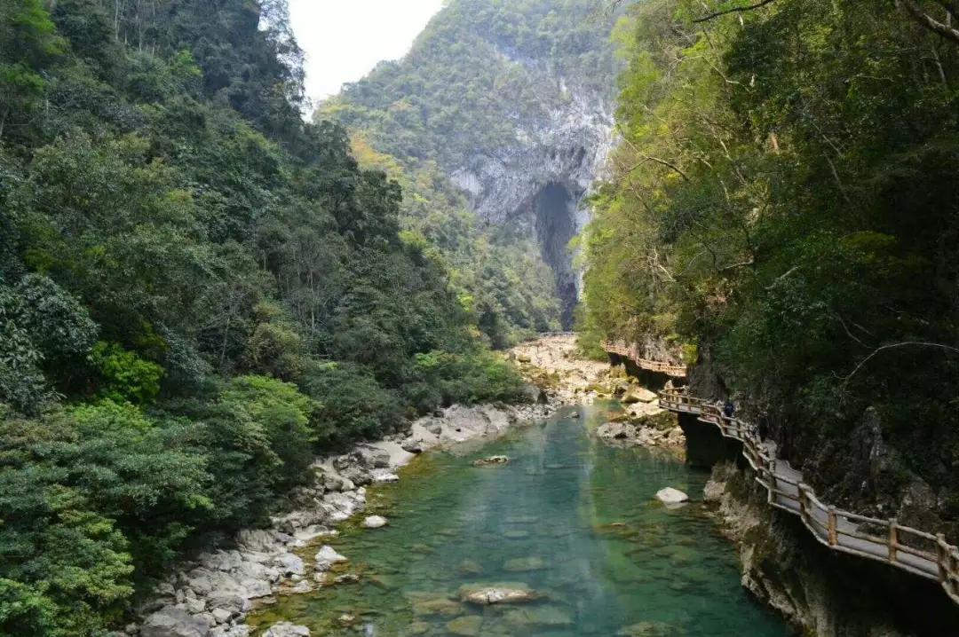 下午:后乘車前往游覽國家AAAAA級景區(qū)【大七孔】(游玩時間不少于2小時);大七孔是以原始森林、峽谷、伏流、地下湖為主體的景區(qū),沿著恐怖峽打狗河直下,可見吊橋,右邊的棧道一面靠山,一邊臨水,蜿蜒曲折,凹凸不平。最為震撼的還是走過棧道的三分之二處,有一橫跨河兩岸的天然巨巖,是喀斯特是貌奇觀之一,俗稱天生橋,被專家們譽為“大自然神力所塑的東方凱旋門”,仰觀橋孔下,只見巨型鐘乳懸掛,橋腳、橋側的裂隙石縫長出綠石草叢灌木,藤蘿花卉纏裹橋身,真是滿目琳瑯、五顏六色的天然大彩橋。