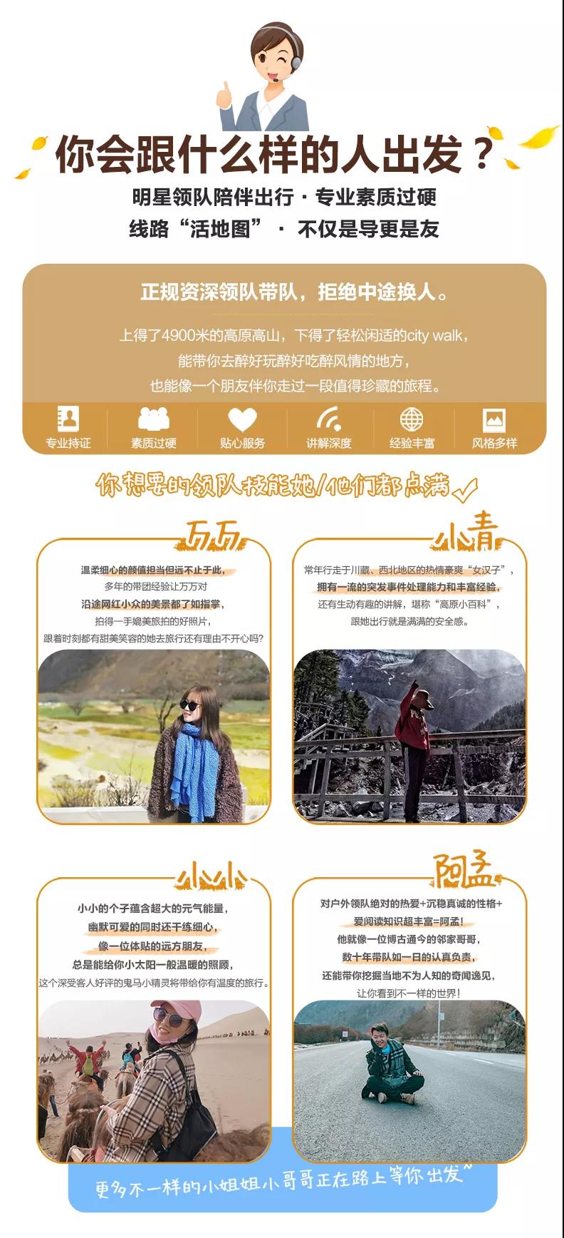 私人訂制:我們業(yè)務(wù)范圍囊括了全國各大城市,川西、西北、東北,在路上永遠(yuǎn)有我們的身影。我們將為每一個(gè)有定制需求的你策劃出獨(dú)屬于自己的完美旅行。