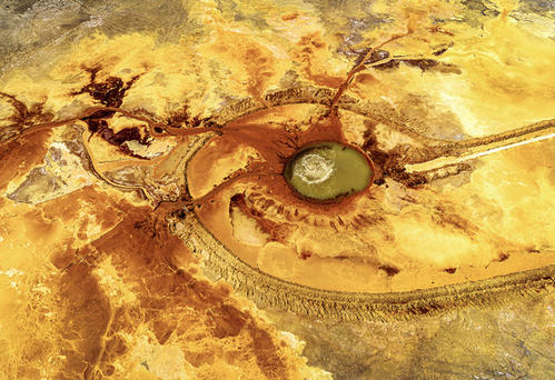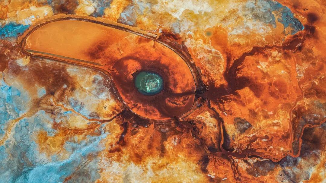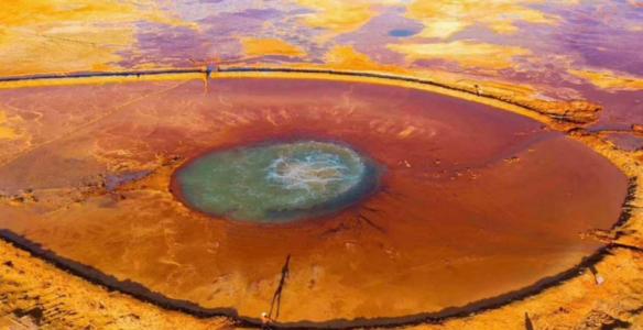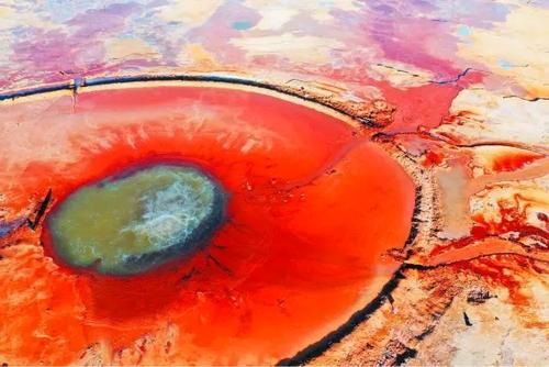隨后我們前往阿拉爾草原深處去探索一方汩汩噴涌了上千年的地熱噴泉——【“惡魔之眼”艾肯泉】。“艾肯”在蒙語中意為“可怕”,而“艾肯泉”在蒙語中又意為“源頭”,因其湖水成分艾肯泉周圍寸草不生且形成了一個紅褐色的圓形,正中央便是汩汩而出的泉水,這便形成了一個巨大的“眼睛”,被人稱為“大地之眼”。從空中俯瞰航拍,這巨大的眼睛脈絡清晰,栩栩如生,在它周圍點綴著許多青色的小泉眼,神秘而震撼;除了其令人驚奇的血色眼睛造型,艾肯泉還有神奇的“喊泉”屬性,據(jù)說站在岸邊朝它大喊,或者是在岸邊跺跺腳,噴泉口的水流量就會加大,會噴涌得更高。