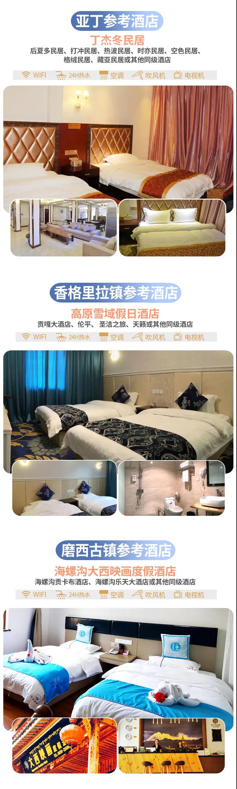 l 磨西古鎮(zhèn):海螺溝大西映畫度假酒店、海螺溝貢卡布酒店、海螺溝樂天大酒店或其他同級(jí)酒店