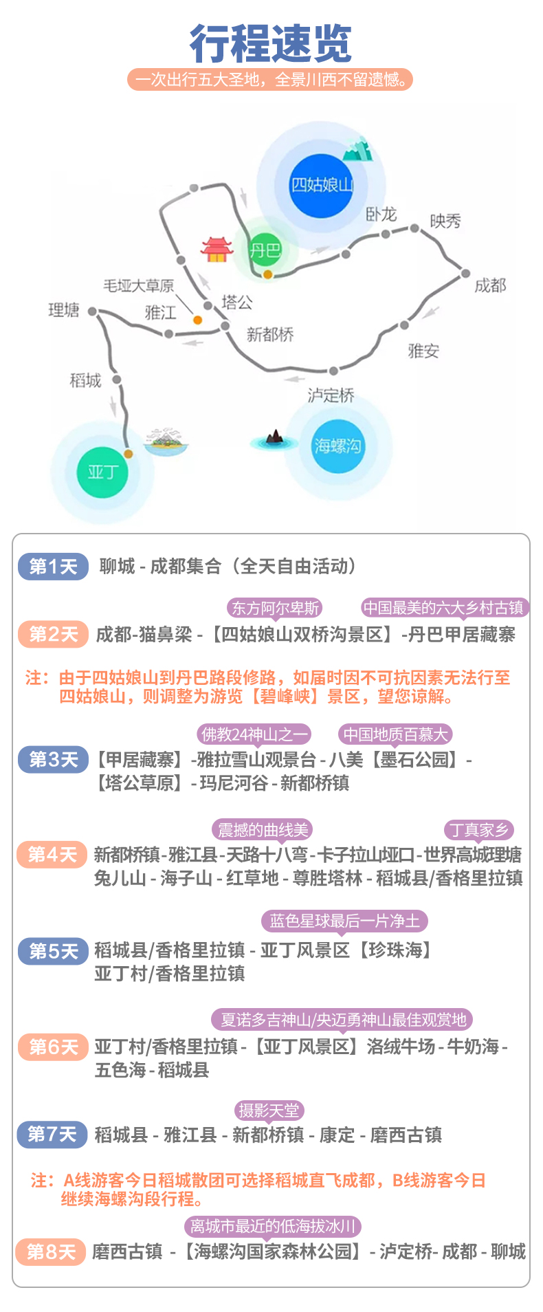 D8 磨西古鎮(zhèn)— (約1公里/4分鐘)海螺溝國家森林公園— (約315公里/5.5小時(shí))成都市區(qū)— 聊城