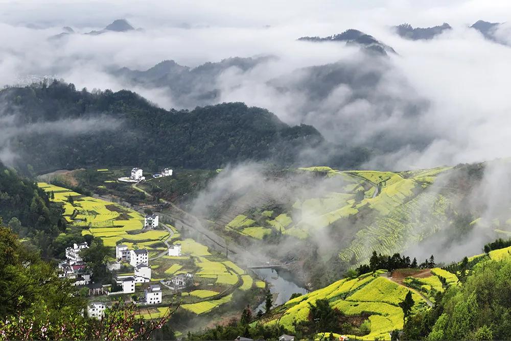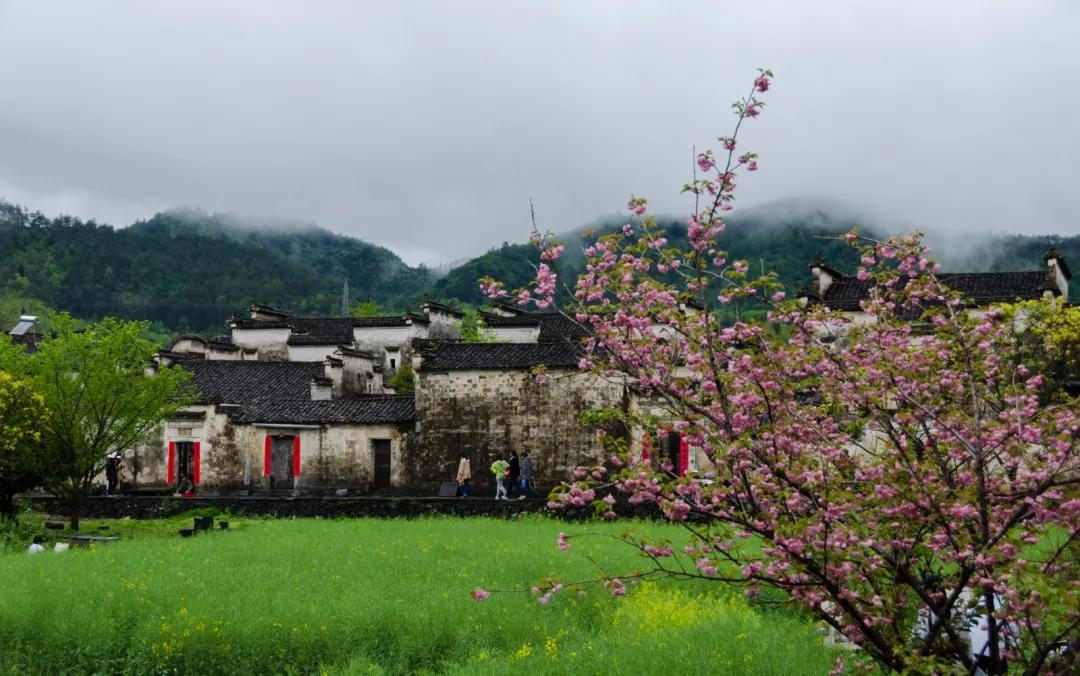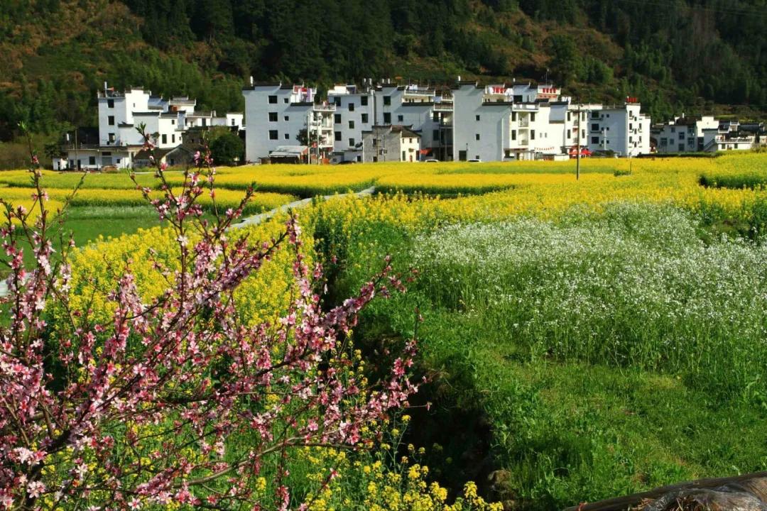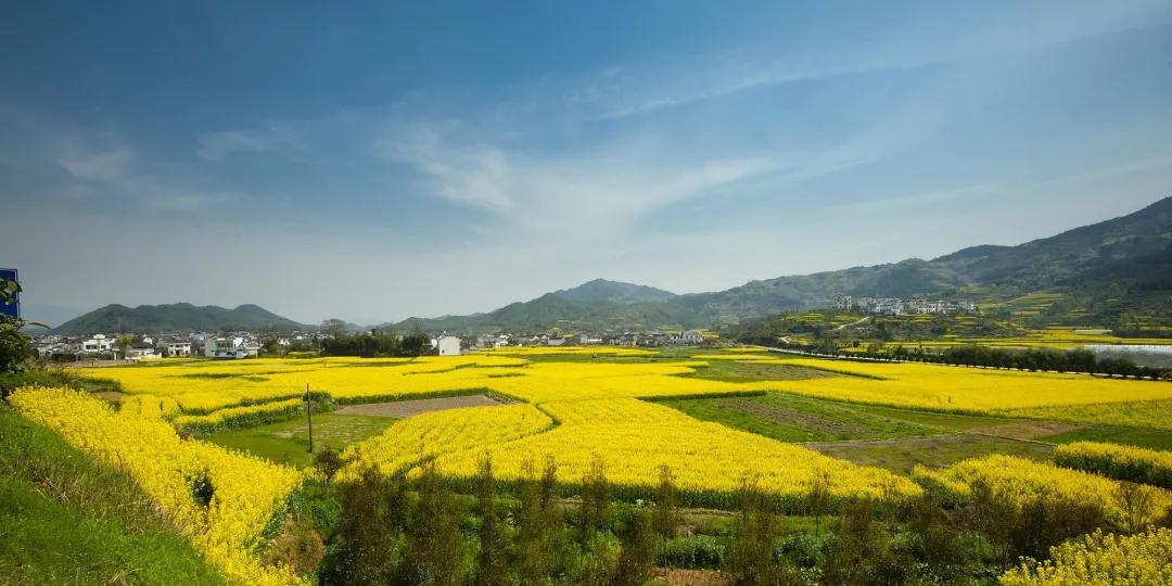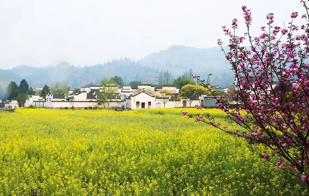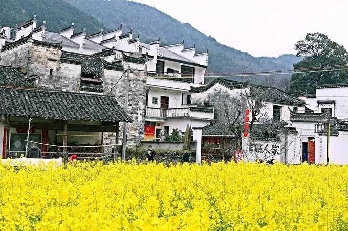 粉墻黛瓦的徽州古民居點綴于廣闊的油菜花叢中