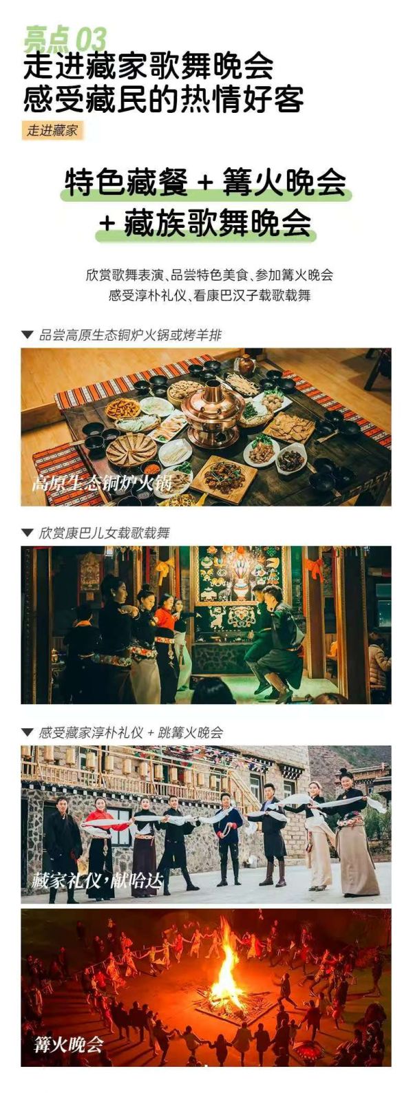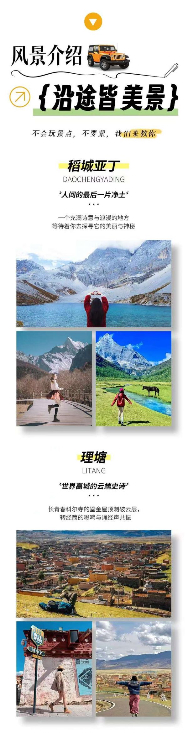 無(wú)人機(jī)+單反旅拍(底片全送+9張精修照片+1條精剪視頻),底片全程不低于40張,無(wú)人機(jī)視頻不低于3條(全車人拍攝旱地拔蔥視頻,晚上領(lǐng)隊(duì)帶大家星空拍攝);贈(zèng)送藏服旅拍(6張底片+3張精修),全場(chǎng)衣服通選(除了三款羊皮襖)+精妝+精造;隨車便攜式氧氣瓶每人2瓶、旅行三寶1套/人、撒隆達(dá)1份;隨車配備礦泉水、急救包、指尖血氧儀;贈(zèng)送特色土火鍋+篝火晚會(huì)+藏族歌舞表演晚會(huì);可免費(fèi)提供露營(yíng)桌椅板凳爐具,可以野餐(食材車上游客一起AA),需提前預(yù)約;體驗(yàn)藏區(qū)文化特色-畫唐卡;包含80w旅游意外險(xiǎn)(不含財(cái)產(chǎn)險(xiǎn));包含成都機(jī)場(chǎng)接機(jī)/市區(qū)接站服務(wù)1次(1-2人安排天府機(jī)場(chǎng)拼車接機(jī))。