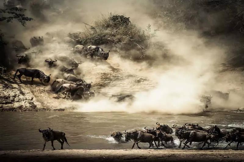 每年馬賽馬拉都會(huì)上演世界上最偉大的自然奇觀,那就是舉世聞名的動(dòng)物大遷徙。從7月到10月,位于北方的馬賽馬拉因連綿的降雨而孕育出新鮮青草地,芬芳的青草氣味,將一百三十萬(wàn)原居于南面塞倫蓋蒂的牛羚深深吸引,使之匯聚成為動(dòng)物世界最大的一組移動(dòng)群體,并且,無(wú)懼水里那兇猛的大鱷魚(yú),前樸后繼的,前呼后擁的橫河跨境,進(jìn)入新天地。他們?cè)竭^(guò)邊坦肯邊境進(jìn)入開(kāi)闊的馬賽馬拉, 在廣袤的地平線上如浪潮般一波一波涌進(jìn)來(lái)。如斯景象,也造就了獨(dú)步天下,舉世無(wú)雙的牛羚(角馬)大遷徙。