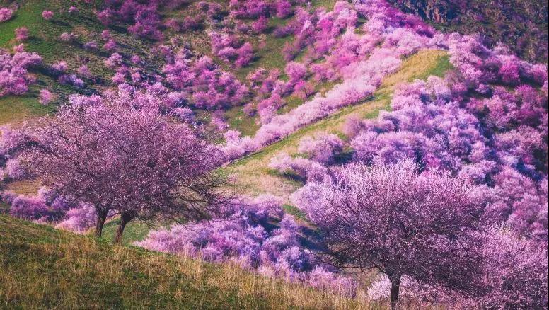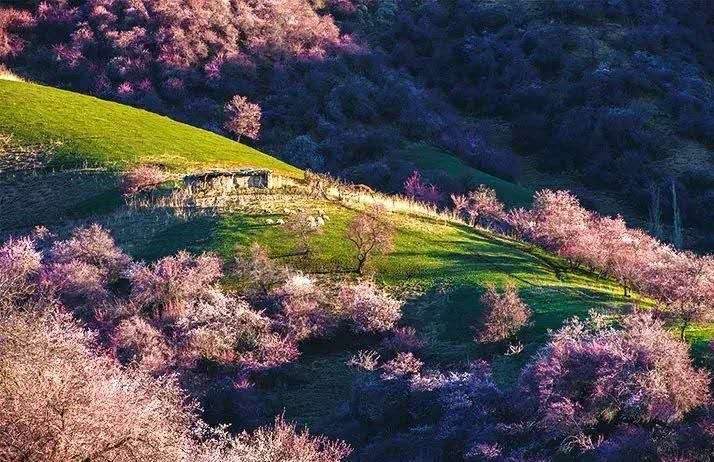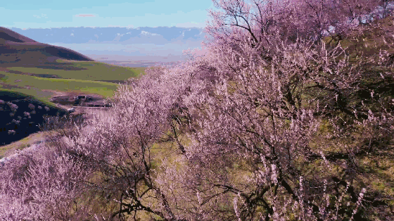 4月初,這里就變身杏花海洋,每個(gè)山巒都點(diǎn)綴著開滿了花朵的野樹林。