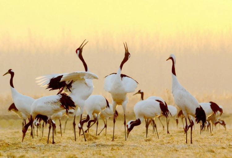 這群珍惜的丹頂鶴,在保護(hù)區(qū)翩翩起舞