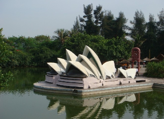 深圳世界之窗其中包括世界著名景觀埃及金字塔、阿蒙神廟、柬埔寨吳哥窟、美國大峽谷、巴黎雄獅凱旋門、梵蒂岡圣彼得大教堂、印度泰姬陵、澳大利亞悉尼歌劇院、意大利比薩斜塔等等。這些景點分別以1:1、1:5、1:15等不同比例仿建精致絕倫惟妙惟肖。有些景點氣勢非常壯觀。如縮小為三分之一比例的法國埃菲爾鐵塔高108米巍然聳立游人可乘觀光電梯到塔頂飽覽深圳市和香港風光??s小的尼亞加拉大瀑布面寬有八十多米落差十多米水流飛瀉吼聲震天聲勢浩大。噴吐巖漿的夏威夷火山以及百米噴泉令游客嘆為觀止。作為景區(qū)活動中心的世界廣場可容納游客萬余人正面有十尊世界著名雕塑廣場四周聳立著108根不同風格的大石柱和近兩千多平方米的浮雕墻還有象征世界古老文明發(fā)祥地的六座巨門一座華麗的舞臺將有世界各地的藝術家表演精彩的節(jié)目讓游客在文化和藝術的氛圍中盡情享受。 在一片濃郁的荔枝園里,有五十多尊世界名雕,如有“約翰•施特勞斯紀念碑”、“擲鐵餅者”、“阿波羅太陽神”、“思想者”等,形象生動,栩栩如生。景區(qū)內(nèi)交通設施 齊備,有高架單軌環(huán)游車、游覽車古代歐式馬車、吉普賽大篷車、老爺車單槳木船、橡皮筏,為游客提供多種趣味的觀賞活動設施。