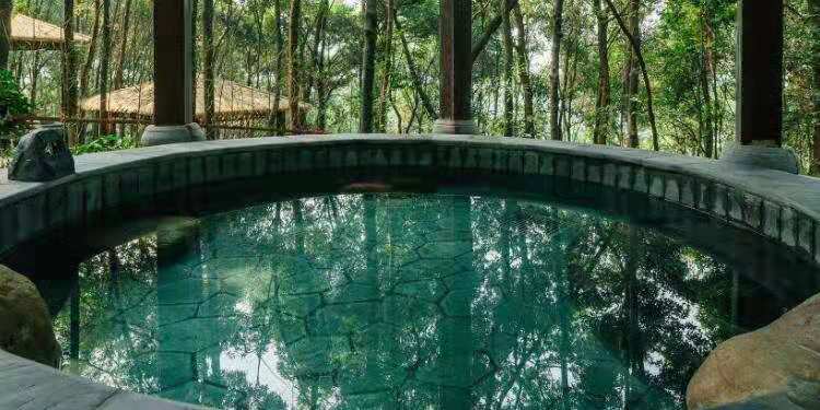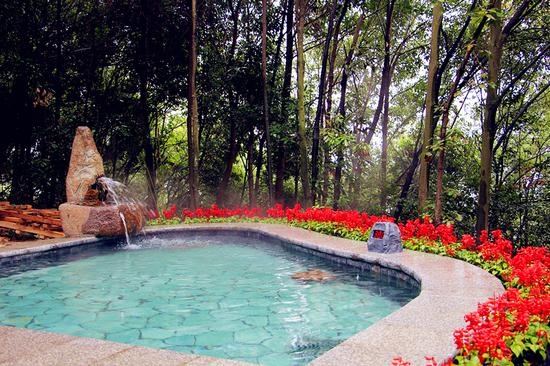 萬(wàn)福溫泉屬于天然自涌溫泉,水質(zhì)清澈碧透,清爽潤(rùn)滑,可飲、可浴,屬鈣鎂型偏硅酸天然自涌溫泉,富含氡、氟、鋰、偏硼酸、偏硅酸等多種有益人體的微量元素和礦物質(zhì)。萬(wàn)福溫泉以福文化為基礎(chǔ),融中華福文化和溫泉養(yǎng)生文化為一體。建有199泓風(fēng)格各異、功效不同的特色泉池,整個(gè)溫泉區(qū)分迎福區(qū)、接福區(qū)、賜福區(qū)、送福區(qū)、造福區(qū)、祝福區(qū)、聚福區(qū)、祈福區(qū)、享福區(qū)九大區(qū)域。鑲嵌在原生態(tài)的樹(shù)蔭花草中的溫泉池,錯(cuò)落有致,相互輝映,泉泉享萬(wàn)福、池池皆養(yǎng)生。