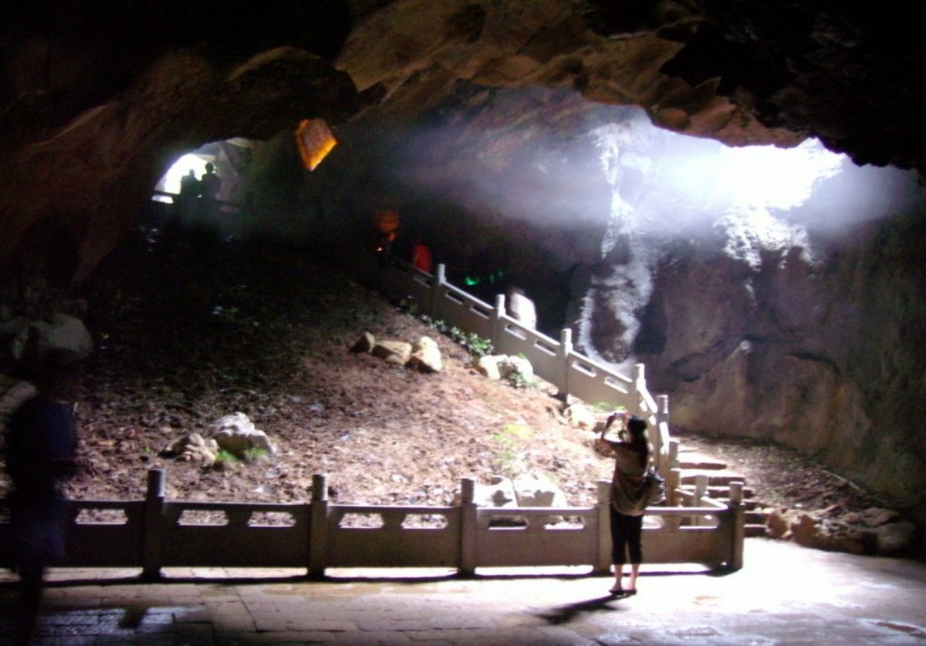 游完了“人間”一層最后一個(gè)洞——孔圣洞,便可沿著山道逶迤而下,一直是到羊羔泉邊的因果洞。這是一個(gè)講佛家因果報(bào)應(yīng)的洞。該洞成洞年代不祥,版權(quán)所有山東聊城聊之旅國(guó)際旅行社有限公司,轉(zhuǎn)載必究!大約與其七洞同時(shí)。洞高3.1米(最高處有9米)寬10米左右(最寬處13米),深10—50米(相傳通陰河,里面還有獨(dú)木舟,一直要以通到百里之外的茅岡仙差河)。因果洞門(mén)口上方有“因果洞”3個(gè)大字。入洞后,第一進(jìn)可以看到牛頭馬面人身像,第二進(jìn)則供奉著閻王。入口處,有一匾額,上書(shū):“今來(lái)善惡”。一付對(duì)聯(lián)是:“因?yàn)樯埔驗(yàn)閻嚎傆浬?,果招祥果招殃分還死后?!比攵春蠊饩€暗淡,陰森可怖,真乃名副其實(shí)的“地府”。 峰泉洞,因有峰泉而得名。它座落在玉皇洞以西,距玉皇洞約3.5公里,是九洞之一,而且修建最早。該洞分為三進(jìn),規(guī)模較大。洞內(nèi)原有匾額,止書(shū)“溟名泉”,對(duì)聯(lián)為:“南海島山火煙高,西天白水金鎖霞”。沿洞深入,二進(jìn)內(nèi)可看到“八仙”鑿像與觀音坐蓮臺(tái)像。還可看到“古今慈航”匾額與九處題壁詩(shī)詞。洞內(nèi)還有八洞神仙坐騎怪獸,如青龍、白虎、青獅、白象等。洞內(nèi)的人與獸像,都各具怪態(tài),栩栩如生,具有很高的藝術(shù)欣賞價(jià)值。進(jìn)入溶洞的第三層,洞內(nèi)寬敞,還有“千丘田”、“跪拜堂”等。洞內(nèi)流水潺潺,沙堆如灘,不時(shí)還有泉魚(yú)戲游。好一處洞天福地!