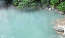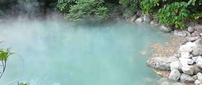 地?zé)峁扔址Q地獄谷,位于新北投公園旁,屬北投五十六號公園,占地六千八百平方公尺,為溫泉之源頭處,已經(jīng)有二百多年的歷史。