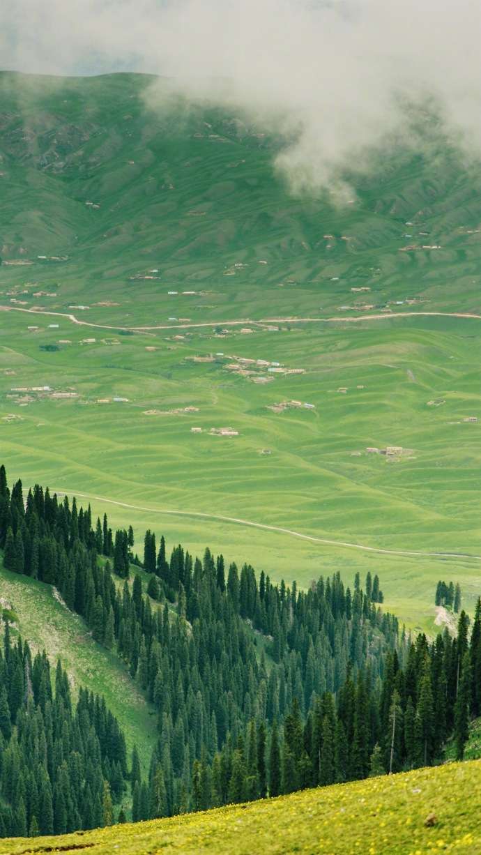 區(qū)內(nèi)海拔高度自1305~3957米,屬寒溫帶大陸性氣候,又因背靠天山北麓,春夏季多降水,涼爽舒適,冬季相對溫暖干燥,年平均氣溫6-9℃,極其適宜動植物生長。