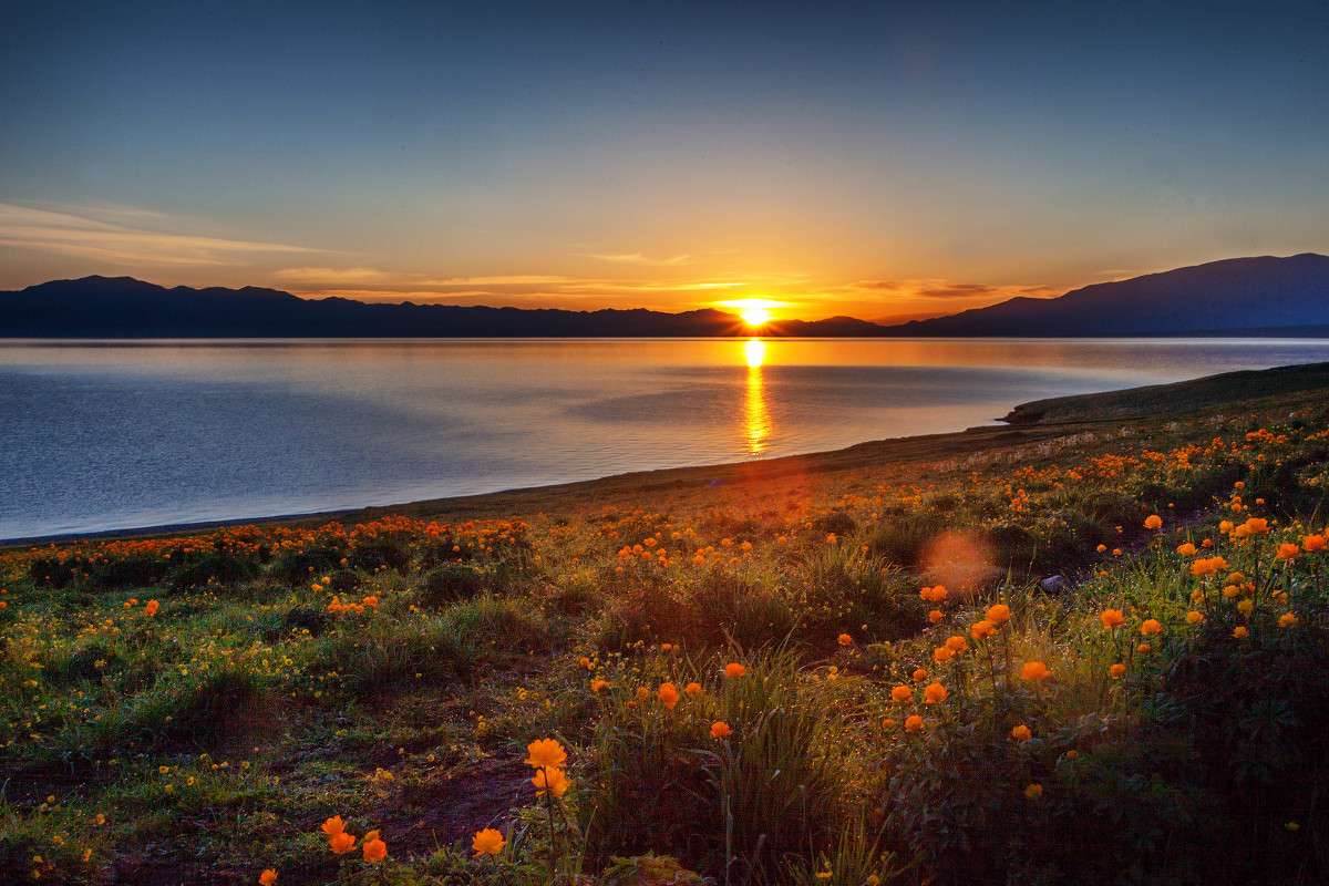 喀拉峻湖:喀拉峻湖面積約273.6公頃,湖水最深處達97米,平均水深80米,風靜波平時湖水似翡翠般深湛,而天光變幻時湖水又呈現(xiàn)出深藍、翠綠、碧綠等不同的色調(diào),庫爾臺層疊的山巒、湖岸倒映其間,宛若橫亙虛空。每當煙云繚繞,登高望去,雪峰、草甸若隱若現(xiàn),既具北國風光之雄渾,又具江南山水之嬌秀。