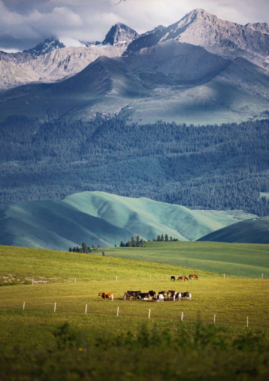 區(qū)內(nèi)集森林、草原、雪山、冰川、峽谷、河流、湖泊等自然景觀為一體,集中代表了新疆天山自然的美學價值。