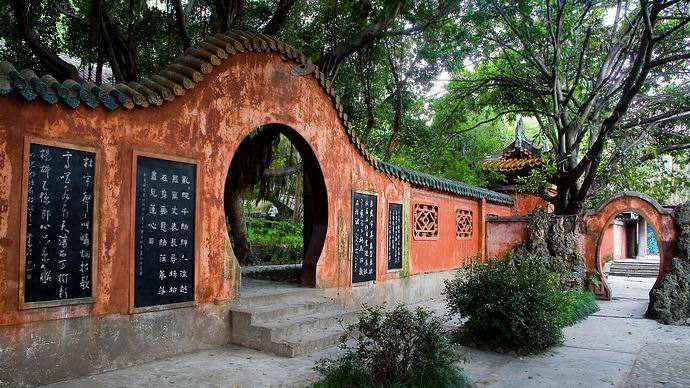 東、西碑林分別位于明很殿與武侯祠兩側(cè)。這里薈萃了從隋代至清代的70多塊碑刻,那篆、隸、楷、行、草各種字體的埤文,是中國書法藝術(shù)精品。其中最著名的是兩塊隋碑,距今已有1300余年。一是《龍山公墓志》(全稱《大隋開府儀同三司龍山公墓志》),一是金輪寺舍利塔碑。在東碑林,《鳳凰碑》和《竹葉碑》風(fēng)格獨(dú)特,堪稱瑰寶。東碑林的碑石上被清代人刻上了:“同治九年六月十九日,大水為災(zāi),高于城五丈”的字樣,從觀星亭而成為珍貴的水文資料。埤林中還有一塊刻著清康熙帝御筆的詩碑,這是康熙書寫的一首唐詩,是賜給一位告老還鄉(xiāng)的清官——監(jiān)察御史傅作楫的。詩文是:“危石才通鳥道,青山更有人家。桃源意在何處,澗水浮來落花”。