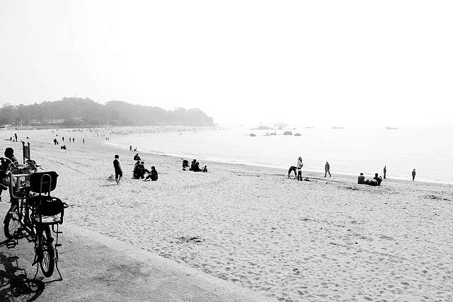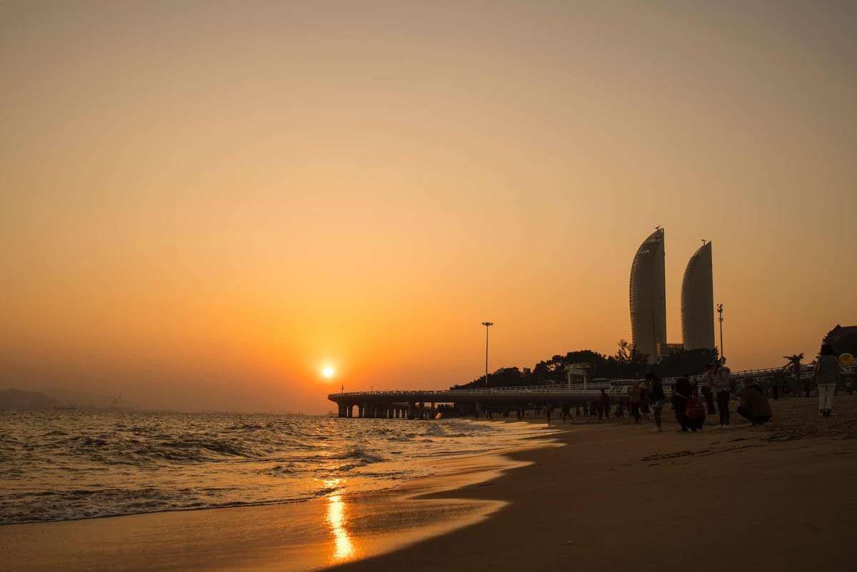 白城沙灘位于環(huán)島南路,出了廈門大學(xué)東部的白城校門,走過天橋就到了。