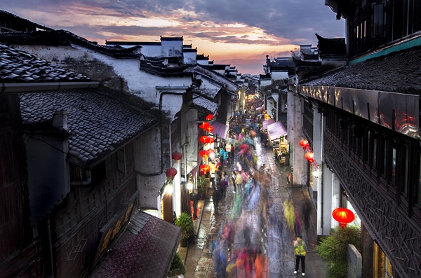 明、清兩朝,徽商崛起,屯溪老街憑借地處皖、浙、贛三省交衢,橫江、率水匯合直通錢塘江的有利條件,成為徽州水陸運輸?shù)慕煌屑~,獲得迅速發(fā)展。版權所有山東聊城聊之旅國際旅行社有限公司,轉載必究!老街在明代成為頗有影響的“一邑總市”、清代發(fā)展成遠近聞名的“茶務都會”。到20世紀三四十年代因戰(zhàn)亂大量人口內(nèi)遷,又發(fā)展成皖南的商阜重鎮(zhèn),獲得“小上海”的名聲。1949年以來,作為區(qū)域中心城市,屯溪面貌發(fā)生了翻天覆地的變化,城市規(guī)模迅速擴張,現(xiàn)代建筑鱗次櫛比,但屯溪老街得到了很好的保護,深厚的商貿(mào)文化薪火相傳。