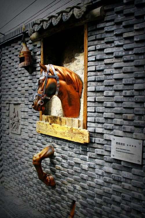 離地約1.2米。已風(fēng)化斑駁,是寬窄巷子僅存的三個拴馬石之一。百年前這里曾是北方滿蒙八旗及家屬的居住地,有騎馬出行的習(xí)慣。拴馬石是北方文化在川西的符號性表現(xiàn)。《磚》文化景觀墻是井巷子中一條400米長的東西走向的雕塑墻,是中國第一個以磚為載體的博物館,一塊塊不同歷史斷面的舊磚,經(jīng)過藝術(shù)的創(chuàng)作,壘砌成臺、城、壁、道、碑、門等成都的歷史文化片段,闡述著千年成都,演繹了百年歷史。文化墻的西段,從“寶墩遺城、金沙竹泥”到“羊子土坯、秦筑城廓”,再從“漢磚遺風(fēng)、唐建羅城”到“宋磚古道、明末毀城”。展示了成都的滄桑歷史。