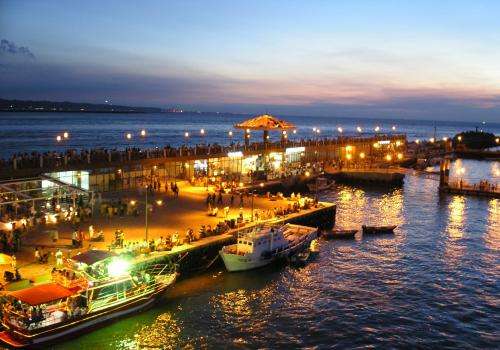 淡水漁人碼頭原只是一個傳統(tǒng)的小漁港,如今,漁人碼頭不但擁有一座美輪美奐的浮動碼頭,其中漁人碼頭最著名的景點,就是330多公尺的木棧道、堤岸咖啡和超大的港區(qū)公園,版權(quán)所有山東聊城聊之旅國際旅行社有限公司,轉(zhuǎn)載必究!構(gòu)成一個環(huán)狀動線,讓人們可以完整流暢的體驗漁港風(fēng)情,站在步道遠(yuǎn)眺對面的觀音山和出海口盡頭的臺灣海峽,看著夕陽從水平面上緩緩落下,美景之盛,令人流連忘返。