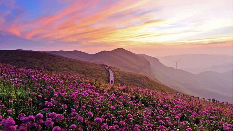 佛光是特殊氣候和地理環(huán)境下形成的光學(xué)現(xiàn)象,天氣驟變而造成較大水汽時(shí),光線遇到這些水汽產(chǎn)生折射,才會(huì)形成佛光。在中國境內(nèi),僅在峨嵋山、梵凈山等少數(shù)地方出現(xiàn)過類似自然奇觀。烏蒙大草原佛光春、夏、秋三季都會(huì)出現(xiàn),出現(xiàn)時(shí)間均在下午4點(diǎn)至6點(diǎn)左右,觀看‘草原佛光’,已成為慕名到盤縣觀光旅游的游客的向往。版權(quán)所有山東聊城聊之旅國際旅行社有限公司,轉(zhuǎn)載必究!同時(shí),在烏蒙大草原,一臺(tái)臺(tái)新安裝的風(fēng)電機(jī)組迎風(fēng)而舞,似在歡迎遠(yuǎn)方賓客。傍晚的高山草原,風(fēng)車飛轉(zhuǎn),霞光四射,金輝盡染。游客可俯瞰綿延峻嶺,仰望旋轉(zhuǎn)風(fēng)車,體驗(yàn)高山草原的愜意。