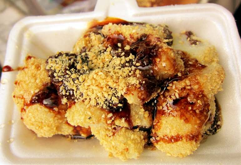 西安鏡糕:陜西的傳統(tǒng)小吃,以糯米為原料蒸制而成的形狀似圓鏡的糕。經(jīng)營鏡糕者多系攤擔(dān)叫賣。清朝有詩云:“柳蔭槐下清晝長,鏡糕擔(dān)子亦生香”的詩句。還沒進回民街,在鼓樓的下面就有很多賣鏡糕的小車,鏡糕放在很小的籠屜里,很小,上面有紅紅綠綠的調(diào)料,要吃的時候會再給蘸上芝麻和糖。