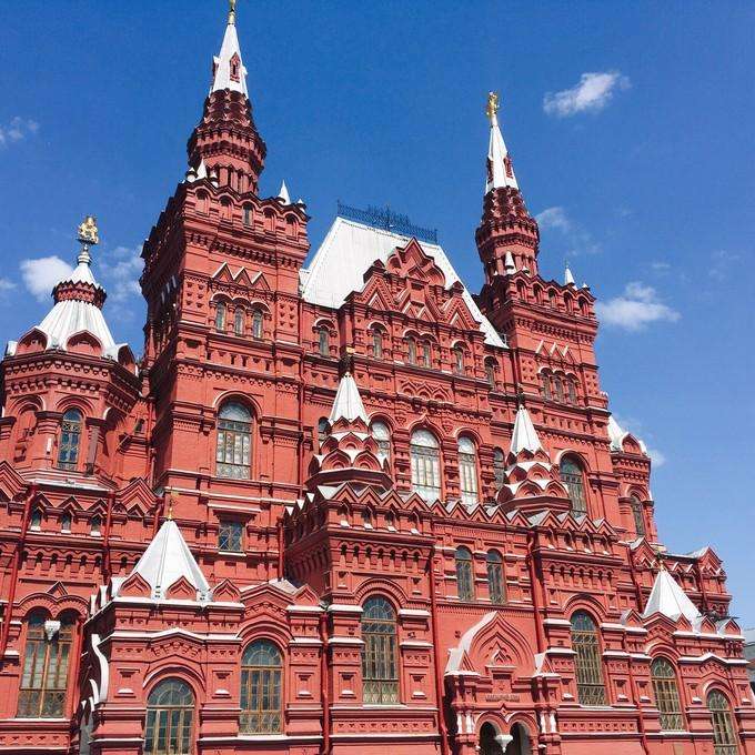 克里姆林宮這一世界聞名的建筑群,享有“世界第八奇景"的美譽(yù),是旅游者必到之處??死锬妨謱m坐落于87莫斯科市中心的莫斯科湖北岸,主體建筑建于14世紀(jì),曾是俄國沙皇的皇宮,蘇聯(lián)時(shí)期為全國黨政機(jī)關(guān)駐地,現(xiàn)在是俄羅斯總統(tǒng)府和國家領(lǐng)導(dǎo)人的辦公地點(diǎn)。 克里姆林宮南臨莫斯科河,西北依亞歷山德羅夫花園,東臨紅場,面積27.5萬平方米。宮墻總體呈三角形,長約2300余米,沿墻聳立著20余座精美的塔樓。宮內(nèi)建筑金碧輝煌,氣勢磅礴。當(dāng)年沙皇舉行加冕典禮的圣母升天大教堂最為巍峨壯觀。古典俄羅斯式的大克里姆林宮是政府舉行重大國事活動(dòng)的主要場所:格奧爾基廳呈金紅色。主要供領(lǐng)導(dǎo)人舉行國事會(huì)談;金綠色的弗拉基米爾廳則供舉行簽字儀式和授勛典禮使用。