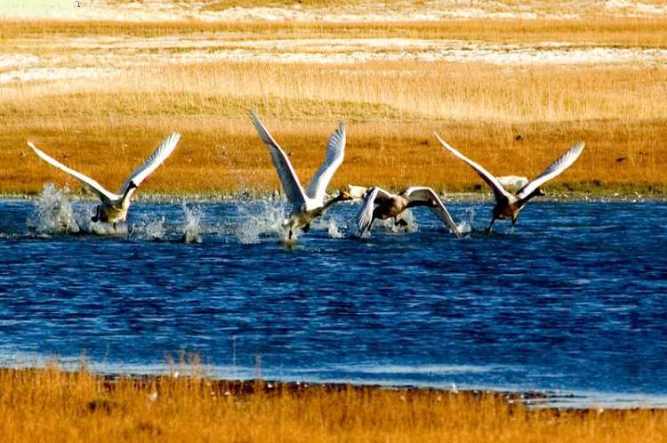 回環(huán)曲折,水量充沛的開都河貫穿其中,廣闊的草原上遍布湖沼、淺水灘和孤島,是水禽棲息的理想之地。泉水、溪流和天山雪水匯入到湖中,水豐草茂,食料豐足,氣候涼爽而濕潤,適合天鵝生長,每當春天來到,冰雪消融,萬物復蘇,大批天鵝從印度和非洲南部成群結(jié)隊的飛越叢山峻嶺,來到天鵝湖棲息繁衍,在和煦的陽光下,湖水、天光、云影、天鵝,構(gòu)成一幅“片水無痕浸碧天,山容水態(tài)自成圖”的畫卷。版權(quán)所有山東聊城聊之旅國際旅行社有限公司,轉(zhuǎn)載必究!9月以后又攜雛南飛。所以6月天鵝孵育時節(jié),是觀賞天鵝的最佳時節(jié),在兩個多月的時間里,成千上萬的大天鵝、疣鼻天鵝、小天鵝以及70多種珍禽飛翔于藍天碧草之間,嬉戲于湖沼的碧水之中,恰如一幅絕妙的畫卷,故而有“天鵝湖”的美稱。當?shù)孛晒抛迥撩癜烟禊Z視為“貞潔之鳥”、“美麗的天使”、“吉祥的象征”。天鵝湖鳥類資源十分豐富,水禽種類多,數(shù)量大。據(jù)考察,有大天鵝、小天鵝、疣鼻天鵝一萬余只,還有灰雁、斑頭雁、白頭鷂、燕鷗、雕、禿鷲等近10余種珍稀鳥類,屬國家一二級保護動物。