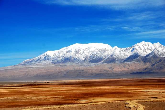 昆侖山西起帕米爾高原,山脈全長(zhǎng)2500公里,平均海拔5500~6000米,寬130~200公里,西窄東寬總面積達(dá)50多萬平方公里,最高峰在于青、新交界處,名為新青峰——布格達(dá)板峰,海拔6860米,是青海省最高點(diǎn)。