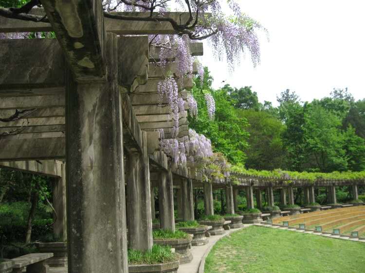 鄧演達(dá)墓位于南京中山門外靈谷寺旁,陵墓座北面南,是江蘇省文物保護(hù)單位。鄧演達(dá)墓墓園宏偉,總面積達(dá)5000余平方米。墓道人 口處為圓形花壇,墓前是一片開闊的綠草地,中間有十字型的水泥甬道將草坪對稱分割。甬道兩側(cè)列植檜柏、龍柏等常綠樹木。草地的東、西兩側(cè)建有鋼筋水泥澆鑄的花廊,花廊曲折延伸,直達(dá)陵墓前?;ɡ葍蓚?cè)遍植紫藤,花廊中還建有方亭,可供游人休憩。