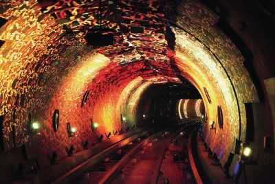 外灘觀光隧道是融交通與旅游功能為一體的又一標(biāo)志性景觀工程,它利用空間,運(yùn)用現(xiàn)代高科技手段,在隧道內(nèi)演示反映人物、歷史、文化、科技、風(fēng)景等各種圖案、景象及背景音樂,使過江過程帶有極強(qiáng)的趣味性、娛樂性和刺激性,給游客留下美好的記憶。連接浦江兩岸的圓形隧道內(nèi)徑6.67米,隧道全長646.7米,采用目前國際上最先進(jìn)的連續(xù)式軌道自動車廂運(yùn)輸系統(tǒng),整個過江時間在2.5-5分鐘,每小時最大輸送量為5000人次。