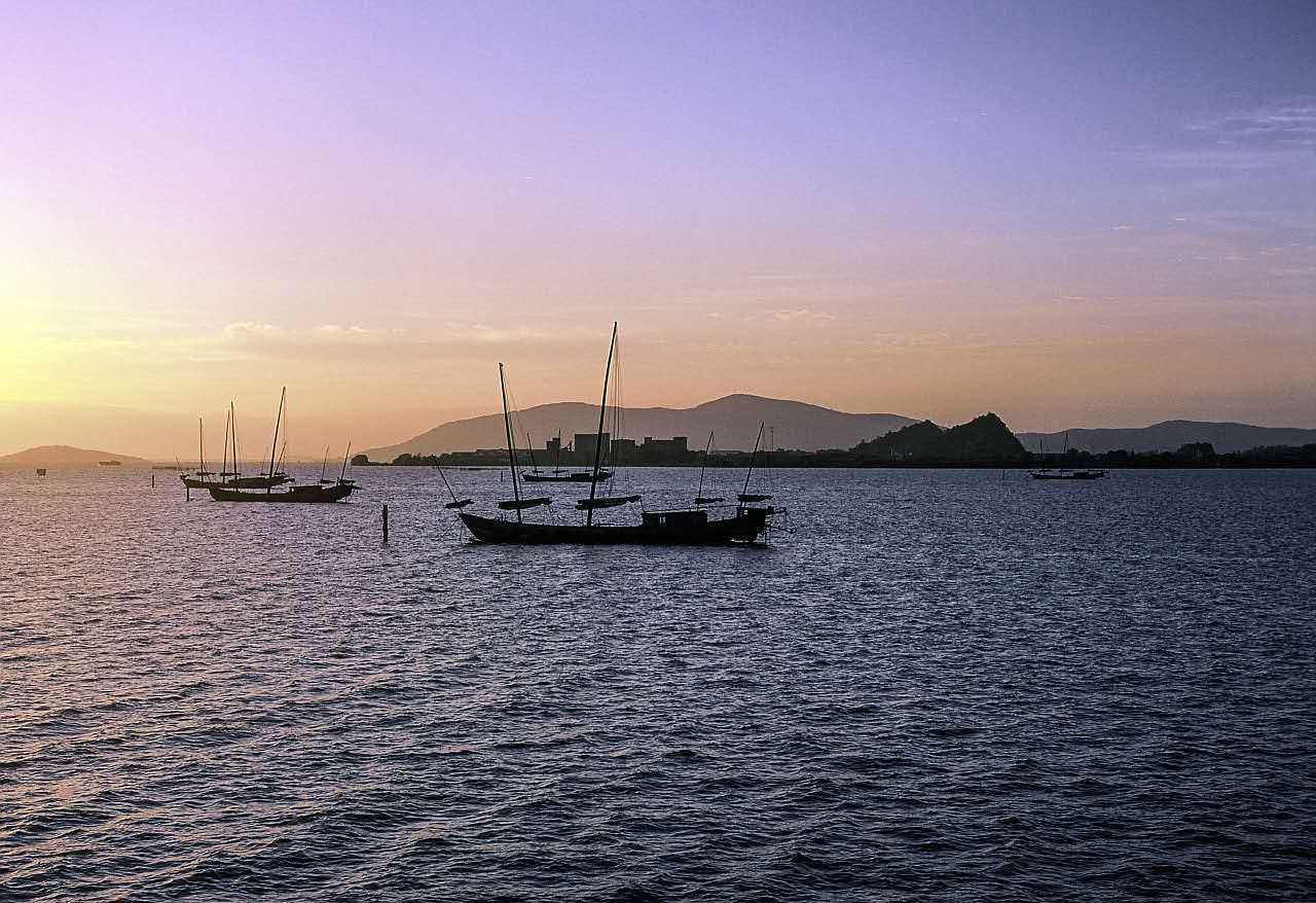 太湖湖水面積2338㎞2,湖面形儀西突的新月,西南部湖岸平滑呈圓弧形,東北部湖岸曲折多湖灣、山甲角。湖泊長(zhǎng)68公里,最大寬度56公里。因泥沙淤積和人工圍墾,一些島嶼分別與東、西庭山連體,近岸的則與湖岸相連成半島,現(xiàn)尚存大小島嶼48座,以西洞庭山面積最大,為75㎞2。