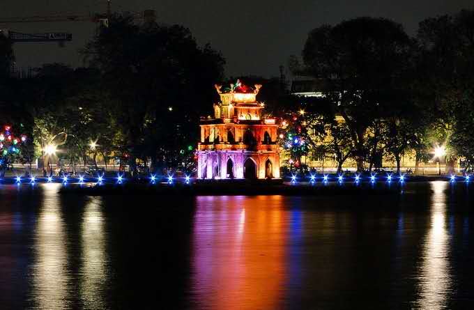 越南語:Hoàn Kiem。越南風(fēng)景區(qū)。是越南首都河內(nèi)眾多大小湖泊中最著名的一個(gè),位于市中心區(qū),南北狹長(zhǎng),呈橢圓形,面積約 12 公頃。過去有水道與東距不遠(yuǎn)的紅河相通,后來被河堤隔斷。