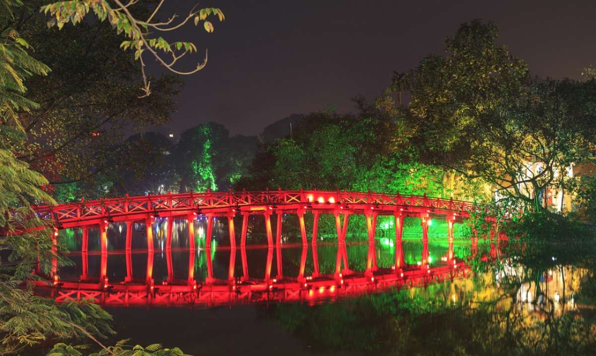 湖岸四周樹木青翠,濃蔭如蓋。湖水清澈如鏡,幽雅嫻靜,平均水深 1.5 米左右。岸邊伴有筆塔、和風(fēng)塔、水榭等古建筑,水中有玉山祠、棲旭橋、鎮(zhèn)波亭和龜塔等勝跡點(diǎn)綴,是河內(nèi)第一風(fēng)景區(qū)。